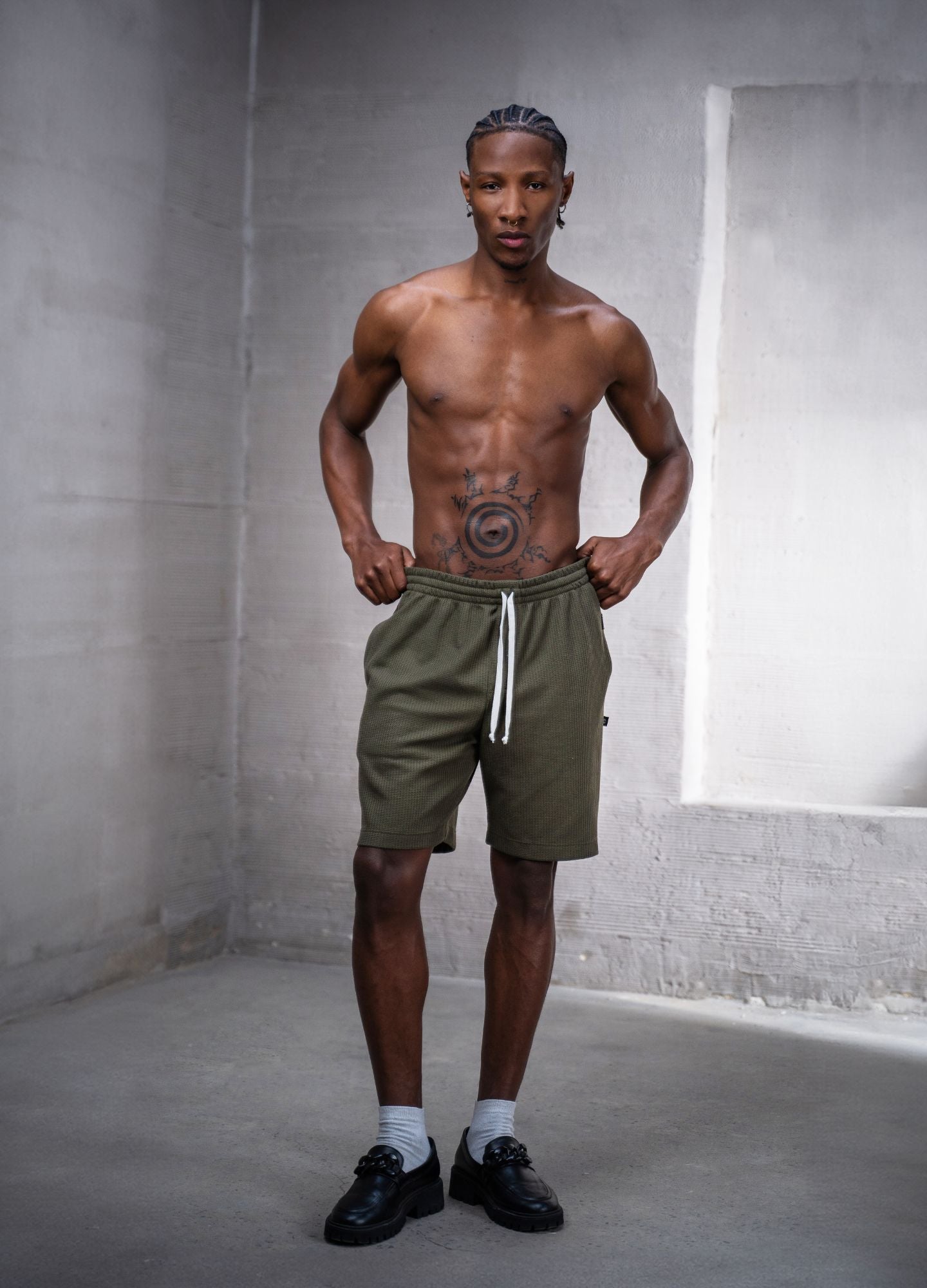 Bermuda en tela Grid o Galleta de color verde, con un gramaje de 210 gr/m².