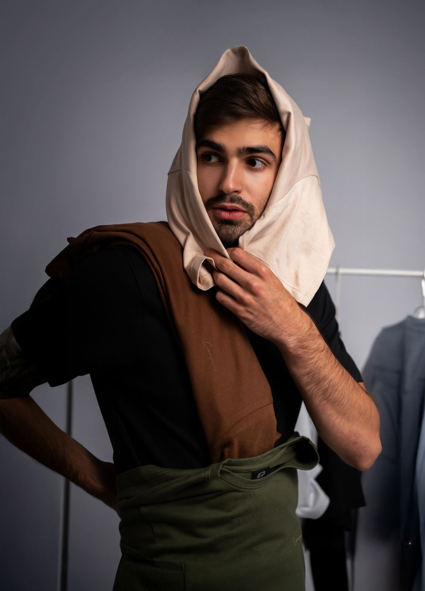 Nuestro modelo mide 1.82 metros, pesa 73 kg y lleva una talla M.