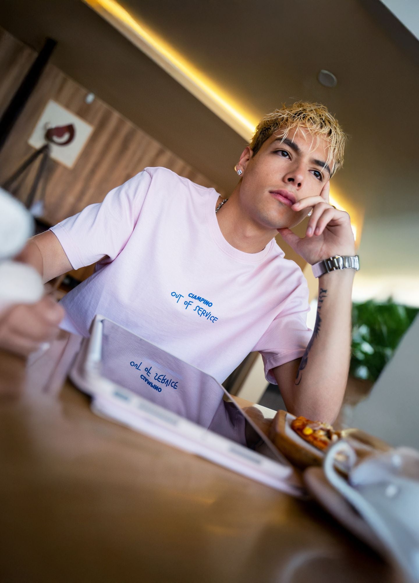 Cuenta con estampados en serigrafía en color azul, el primero ubicado en el centro del pecho y el segundo estampado principal en la espalda. Incorpora cuello en RIB 1x1 tono a tono, marquilla tejida y una bandera lateral en el costado izquierdo con el logo de nuestro icónico perezoso.