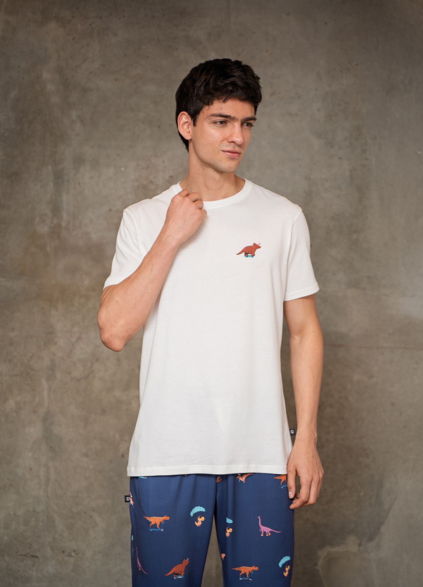 La prenda se complementa con una camiseta 100% algodón, disponible en color blanco en silueta regular. Este pantalón es perfecto tanto para relajarte en casa como para salir cómodo al aire libre, y combina con otros diseños de la colección para lograr el perfect match con tu pareja.